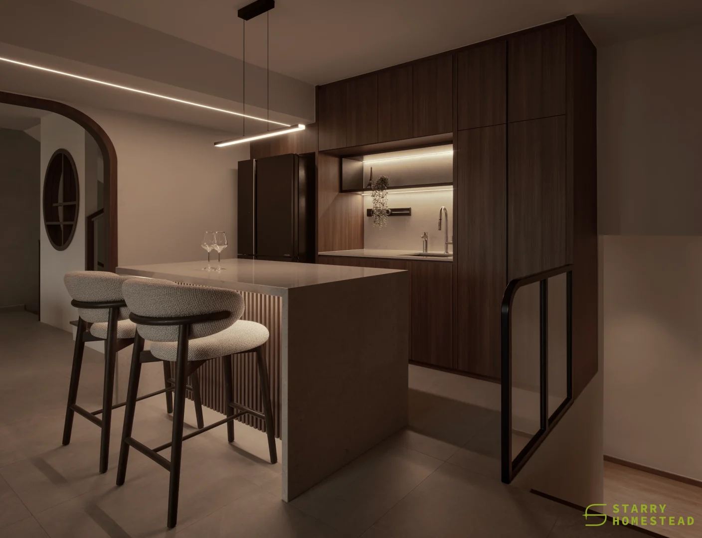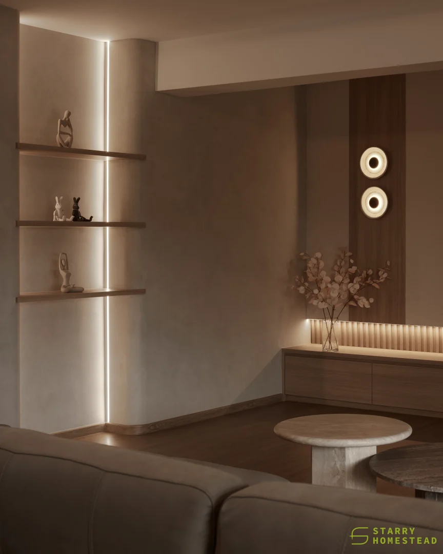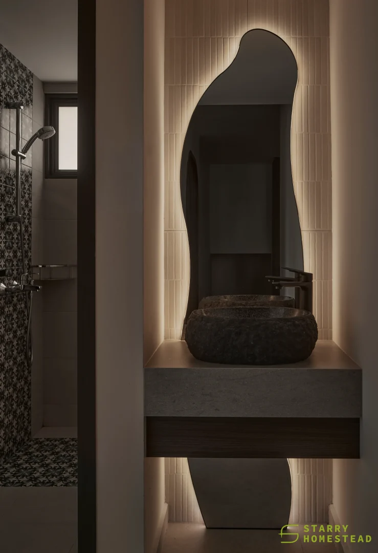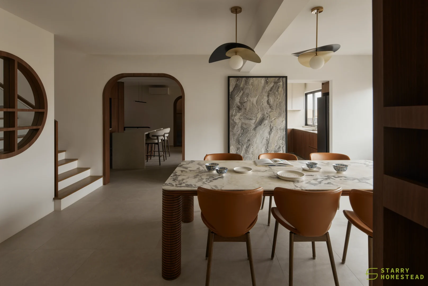 A layered mix of Japandi, Modern, Mid-Century, Wabi-Sabi and Luxury styles defines the overall design, carefully shaped around the homeowners’ preferences and functional needs. Rather than adhering to a single aesthetic, each space is given its own identity while maintaining a cohesive visual language throughout.