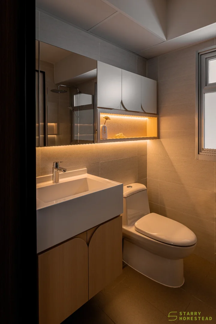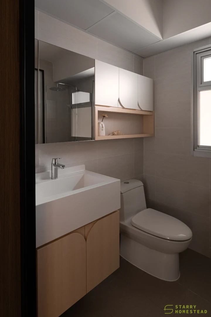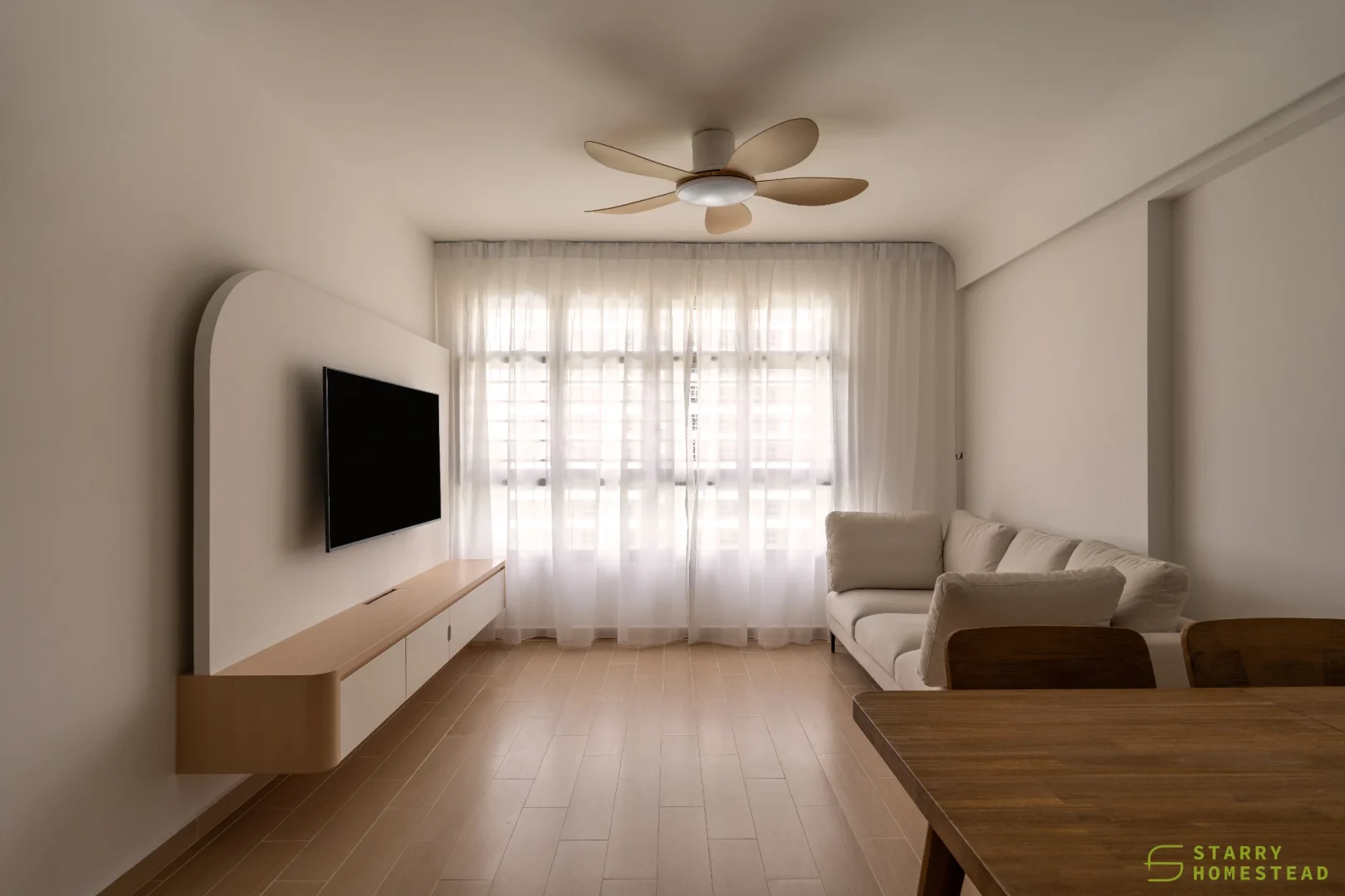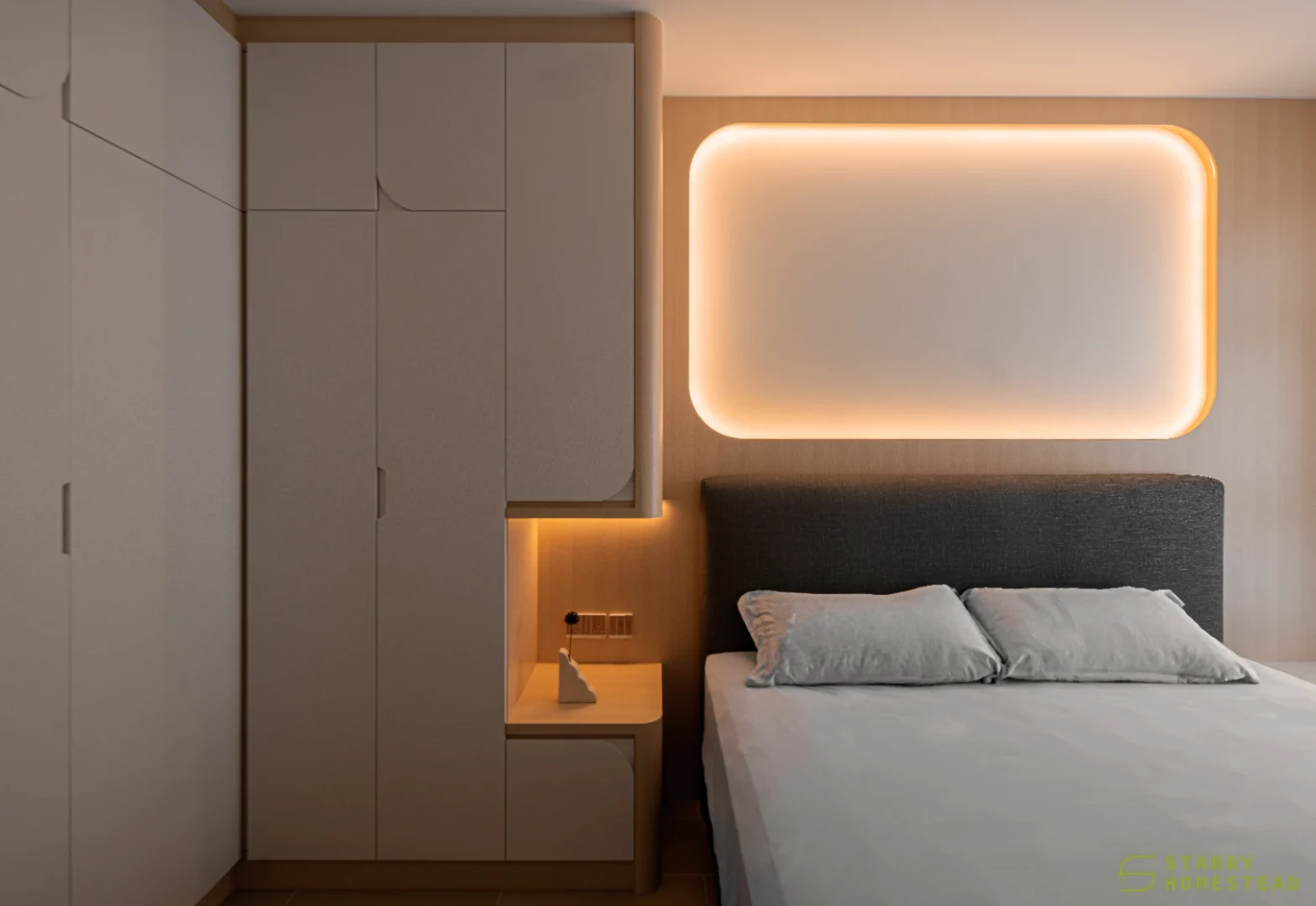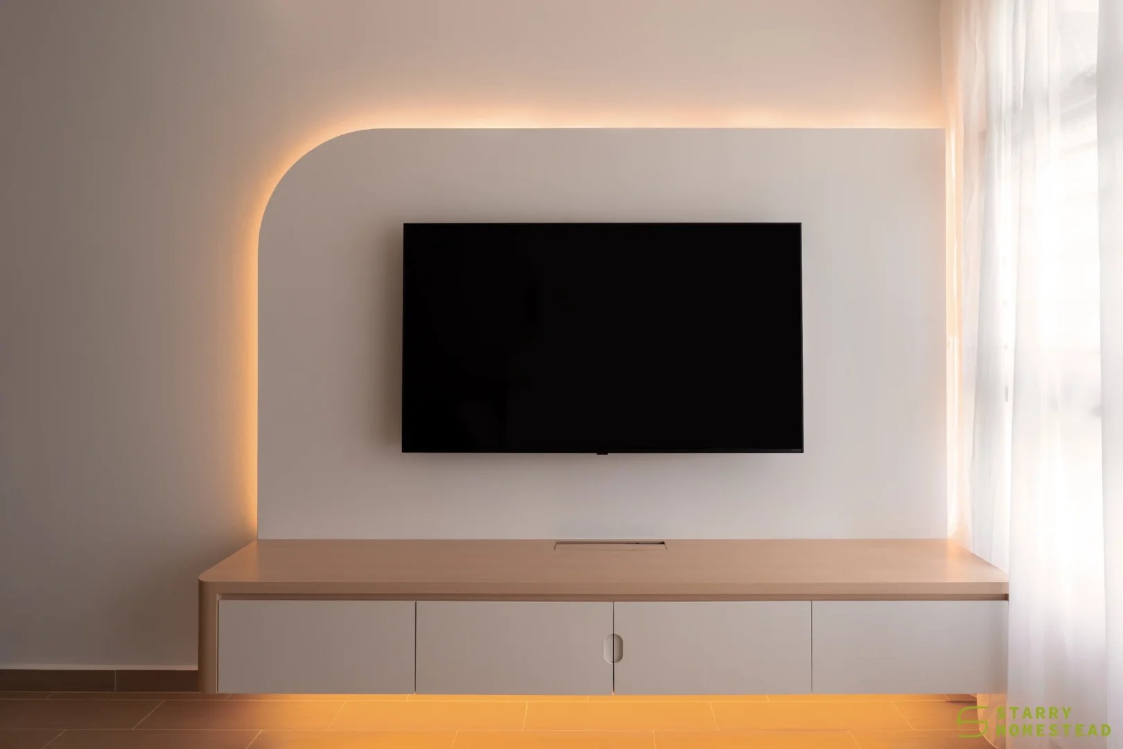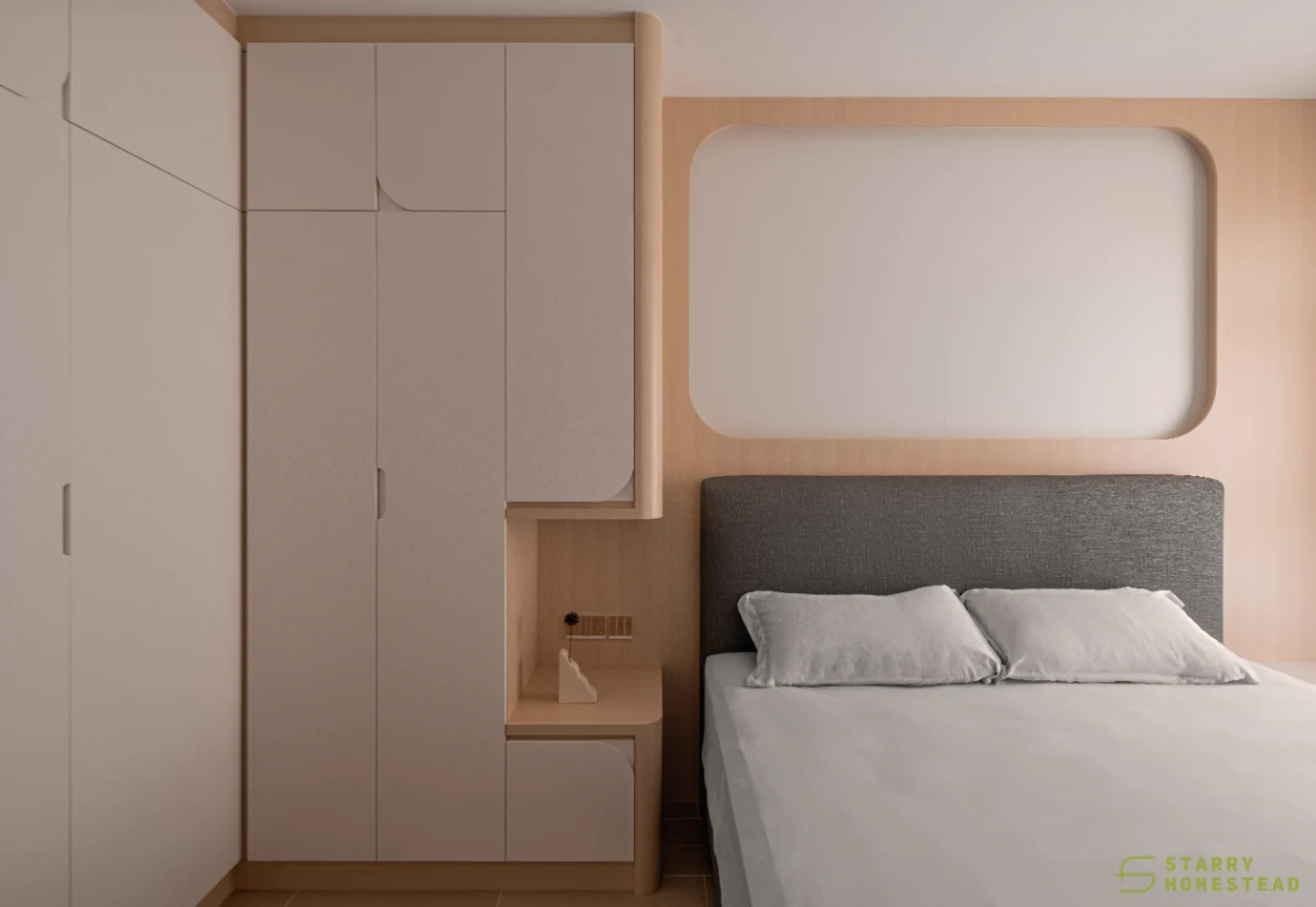 Modern Scandinavian influences define the space, creating a bright, clean, and comfortable interior. Curved elements soften the layout, adding gentle accents that enhance both flow and safety. A curved feature wall paired with reeded glass brings a touch of modern elegance while allowing natural light to fill the foyer, enhancing brightness and openness. The palette of white and warm wood tones creates a sense of inclusiveness and warmth, while contemporary forms maintain a rational, balanced aesthetic. Every detail is carefully considered, resulting in a harmonious blend of practicality and visual appeal. The design embodies the idea that even in modern living, warmth and inclusiveness remain essential.